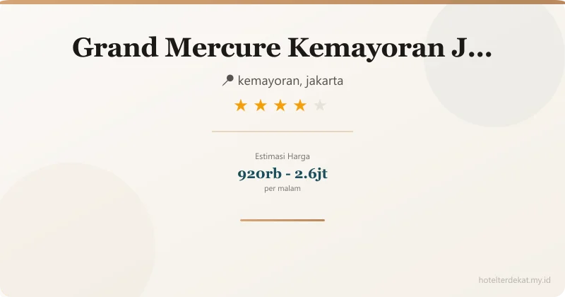 Grand Mercure Kemayoran adalah hotel Accor brand premium yang lokasinya super strategic untuk visitors JIExpo (Jakarta International Expo)! Kalau ada pameran, konser, atau event besar di JIExpo, ini pilihan stay paling convenient.