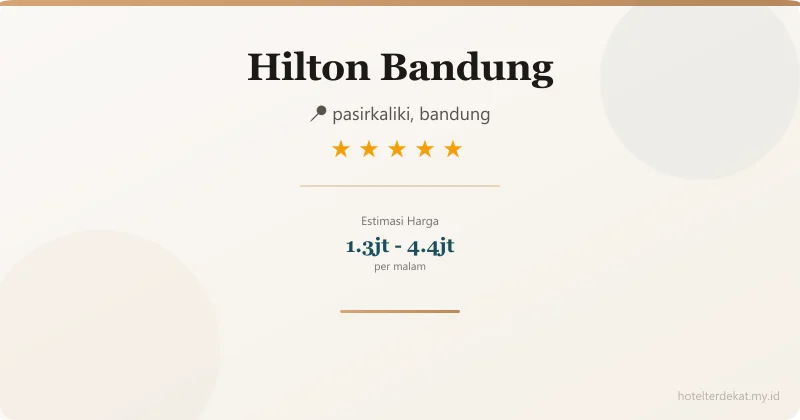 Hilton Bandung menetapkan standar kemewahan modern di Bandung. Terkenal dengan ukuran kamarnya yang fantastis (terluas di kelasnya) dan lokasinya yang sangat strategis bagi pelancong kereta api.