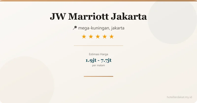 JW Marriott Hotel Jakarta adalah level tertinggi Marriott di Indonesia. Executive lounge dan spa premium di Mega Kuningan.